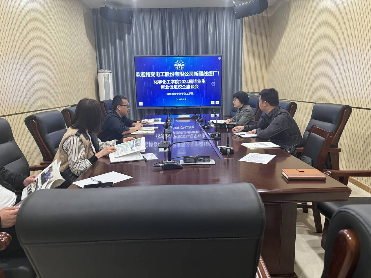 3月6日下午,特变电工股份有限公司新疆线缆厂来到公司开展校企合作座谈交流会,公司党委副书记马祥、科研与研究生办公室主任高艳红、化学系主任赵俭波、材料系副主任欧明、员工办公室副主任石建敏等参加会议,会议由马祥副书记主持。