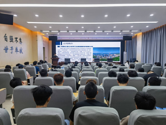 宣讲会上,企业招聘负责人马冰雪通过播放企业宣传就企业的基本情况、公司的综合实力、行业影响、发展历程及产业方向等内容展开宣讲介绍,并详细介绍了此次招聘岗位的要求、岗位职责、薪酬福利、晋升渠道以及公司环境等。