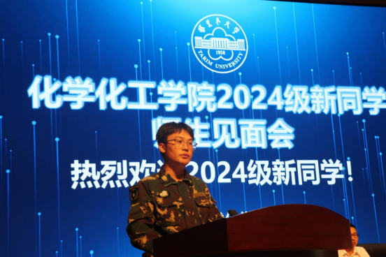 教师代表陈辅周老师介绍了自己奔赴西部,建设塔大的经历,希望同学们在校期间能够勤奋好学,积极进取,勇于实践,为将来立足于社会、奉献社会打下扎实的基础。