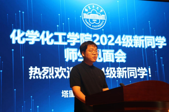 新生代表化学工程与工艺2024级1班的张庆欣同学呼吁全体2024级新同学要志存高远、以书为友、积极运动、珍惜时间,不负青春,不负韶华的度过大学四年。