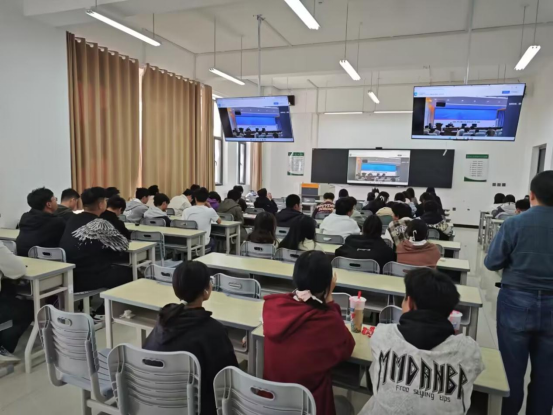 讲座采用线下+线上的方式进行,各班级班委及员工代表在化工楼附楼202报告厅参加宣讲会,其余同学在班主任的组织带领下在教室观看直播。