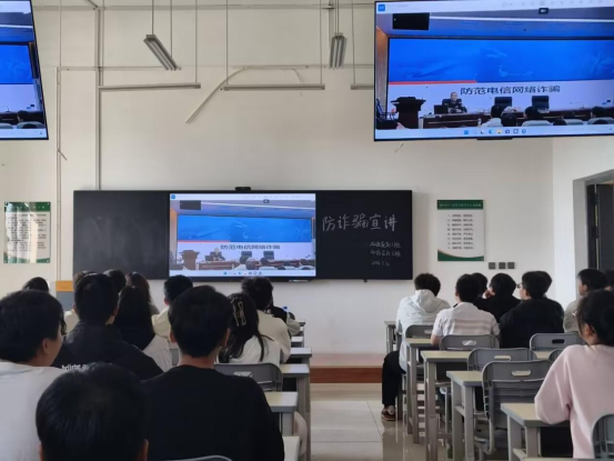 警官们通过播放反诈宣传视频、反诈知识讲解等形式,以通俗易懂、生动有趣的方式向同学们详细介绍了电信诈骗的常见手段和防范方法。并结合近期高发的新型电信网络诈骗案例,深入浅出地讲解了网络贷款诈骗、刷单返利诈骗、“杀猪盘”诈骗等常见电信诈骗的特点和危害,提醒同学们要时刻保持警惕,牢记“未知链接不点击、陌生来电不轻信、个人信息不透露、转账汇款多核实”的“三不一多”原则,切切实实做到不听、不信、不转账。