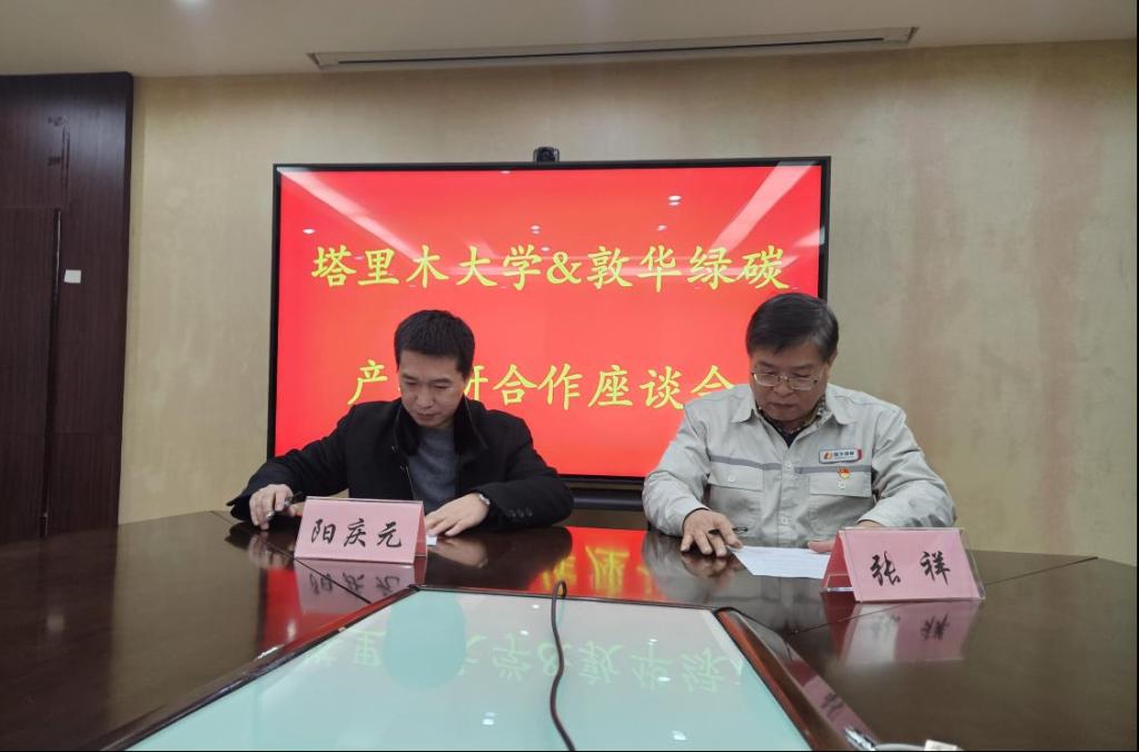 11月28日上午,阳庆元一行奔赴克拉玛依市新疆敦华绿碳技术股份有限公司,与该公司党委书记张祥等进行了深入座谈交流并慰问了公司优秀员工、该公司气体工程部部长苟国磊。随后,阳庆元和张祥代表校企双方签订了产学研战略合作框架协议和实习实践基地框架协议。
