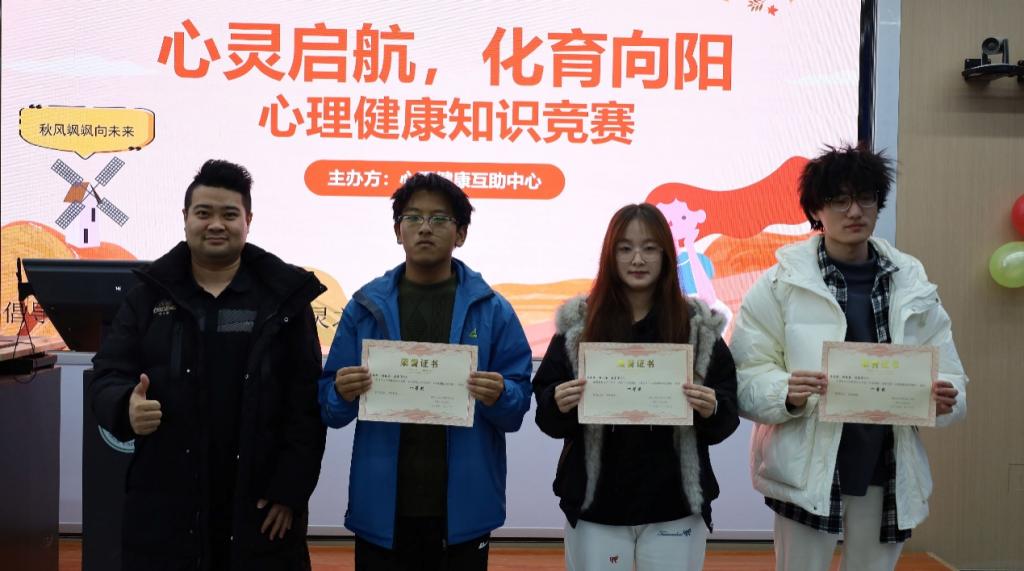 2025年11月28日,世界杯8833300足球“心灵启航,化育向阳”心理健康知识竞赛决赛在梨苑综合楼208成功举办。公司员工办公室主任石建敏老师、副主任姜明老师担任评委。本次比赛旨在以赛促学,普及心理健康知识,营造关注心理健康的积极校园氛围。
