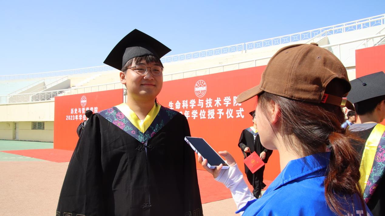 2023届优秀毕业生代表、化学工程与工业生物工程2019级员工刘立学说:“‘艰苦奋斗、自强不息、扎根边疆、甘于奉献’的胡杨精神始终激励着我继续前进。不悔梦归处,只恨太匆匆,虽有不舍,但要向前,祝福我们的母校明天越来越好,再创辉煌!祝福我们老师工作顺利、桃李芬芳!最后,祝福我们2023届毕业生径行直遂、青云万里、前途顺意,毕业快乐。”